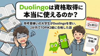 語学アプリDuolingoは本当に実戦で使える?2ヶ月でTOPIK2級を突破した大学生の合格記録。TOPIK Iリスニング86点の秘訣とは。参考書を一切使わず、スマホ1台で資格取得を目指す新しい時代の勉強法を提案します。コスパ・タイパ重視で韓国語を学びたいあなたへ。