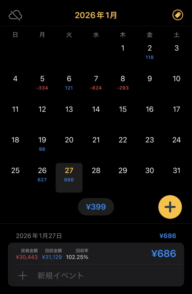 下にトレード金額を記録したものも貼っておく。(1/26がスタート日)